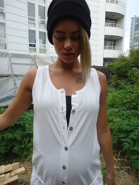 So here´s me doing some yardwork! Nahh, not really. This is how I would dress though! Behold one of my favourite overalls; it´s white, has pockets and the possibilty of looking like a giant baby when wearing. I love it. I didn´t realize until after we shot this how very clockwork orangey of me this look is. Nice. Also, soon it will be fall so I´m using every opportunity to dress inappropriately in white. Not much more to say about this one.
